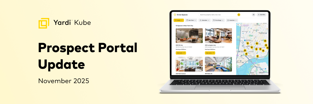 The Prospect Portal is available now. To start using these features, reach out to your Yardi Kube support channel to setup e-commerce at your space.