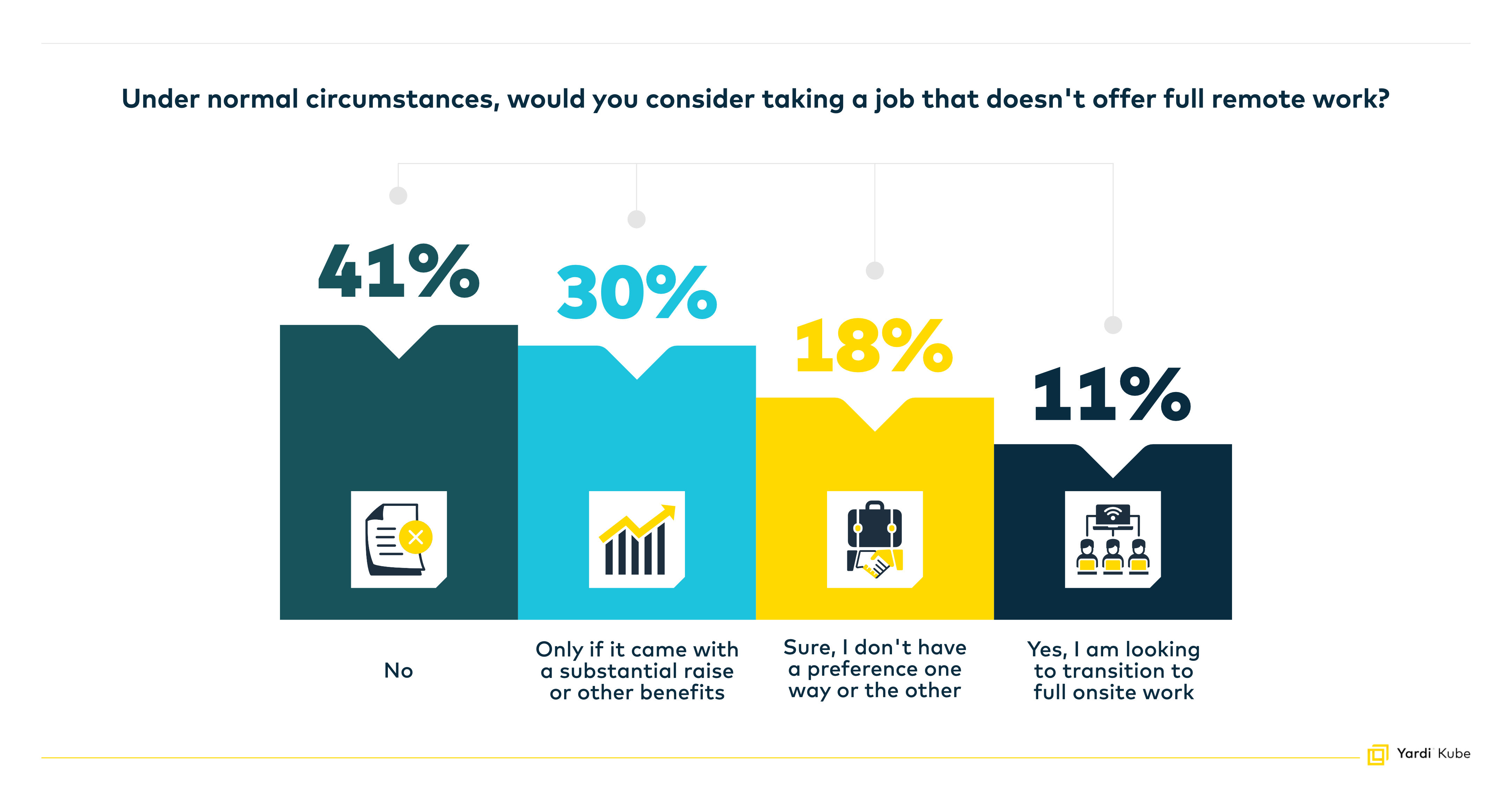 - 41% of employees would not consider job opportunities that don’t offer full remote work