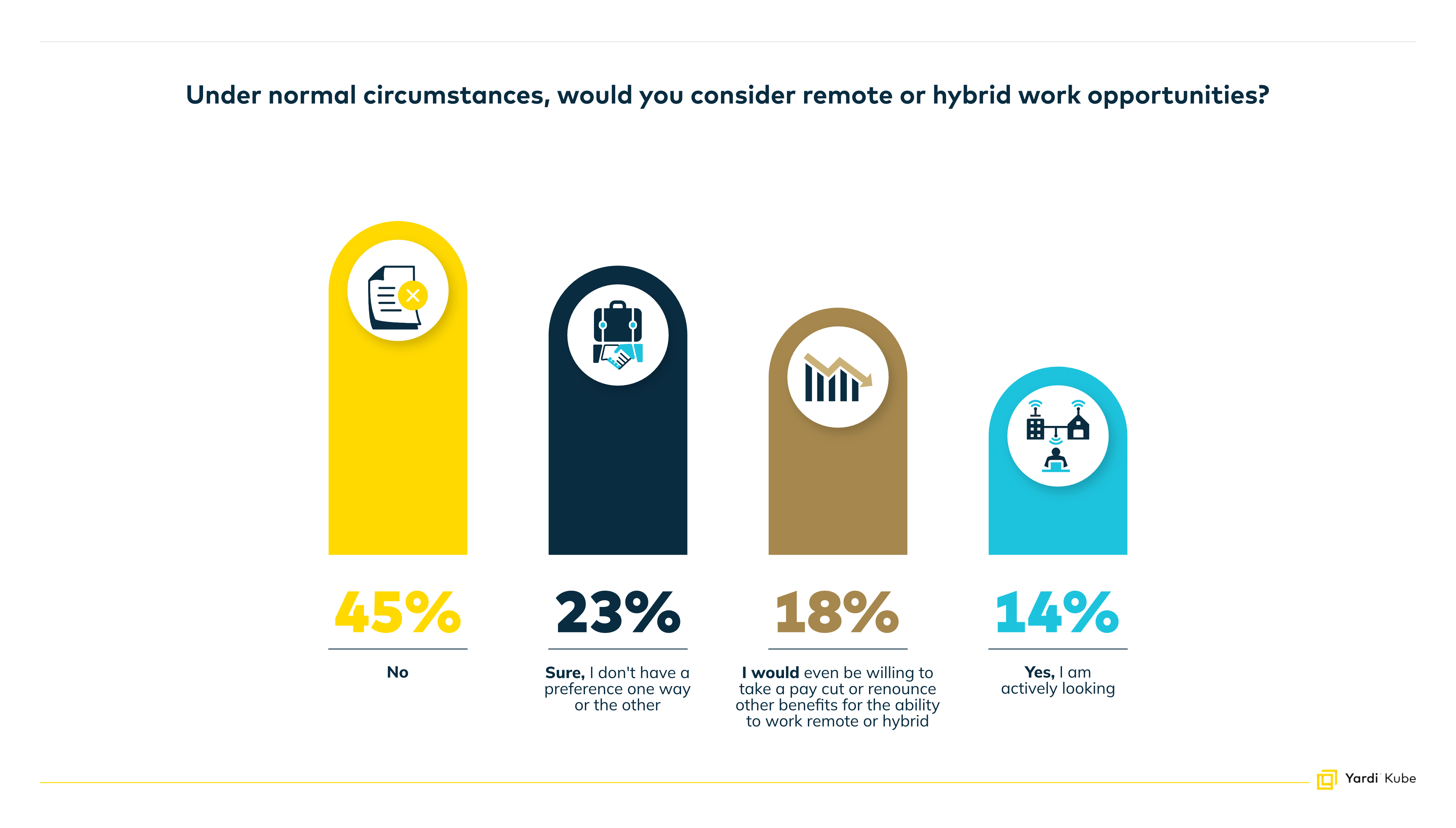- Onsite workers are not locked in and may be enticed by hybrid or remote opportunities, particularly when aligned with personal or professional goals.