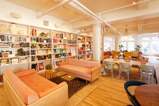 Take that image and flip it to a ‘boutique’ style space, featuring yoga classes, pink couches, and bookshelves dedicated to female authors.